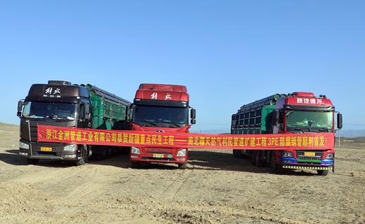 9月28日上午,四辆装载着"茄子视频色版在线观看"牌3PE防腐茄子视频APP下载大货车到达新疆阿勒泰地区项目现场