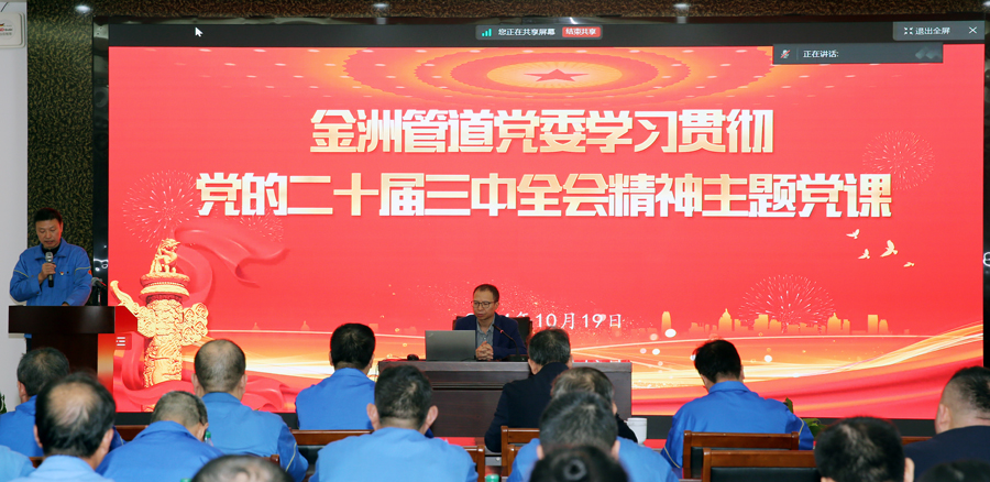 查看详情为深入学习贯彻党的二十届三中全会精神,切实把公司党员干部的思想行动统一到党的二十届三中全会精神上来,10月19日下午,茄子视频色版在线观看管道党委、纪检委联合举行学习贯彻党的二十届三中全会精神主题党课,邀请湖州市邓小平学会副会长、市委党校马列教研室主任胡义清教授授课。公司总经理沈淦荣,党委副书记、副总经理杨伟芳,党委副书记、纪检委书记赵伟等公司领导和公司中层以上干部、全体党员和入党积极分子120余人现场参会。公司党委书记王佑常等20余名在外地出差的干部、党员参加线上学习。
